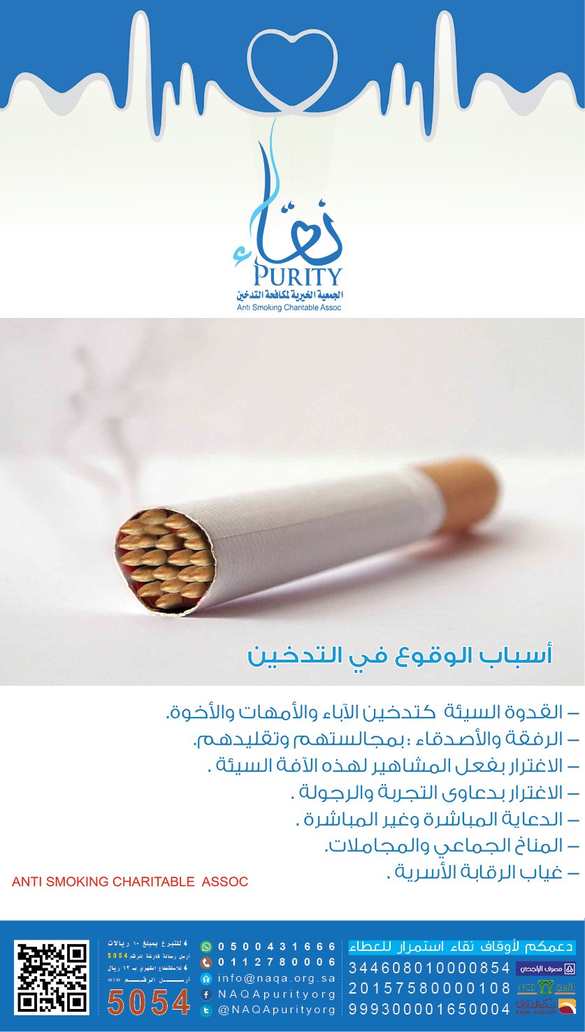 Naqa جمعية نقاء On Twitter من اسباب الوقوع في التدخين 1 تدخين الاهل كالاباء والامهات والاخوه 2 الرفقه والاصدقاء بمجالساتهم وتقليدهم 3 الدعاية المباشره وغير المباشره 4 غياب الرقابه الاسرية Https T Co A0f7nil73s