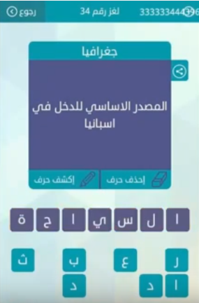 حل سؤال المصدر الاساسى للدخل فى اسبانيا لغز رقم 34 من لعبة وصلة للمجموعة الرابعة صقور الإبدآع